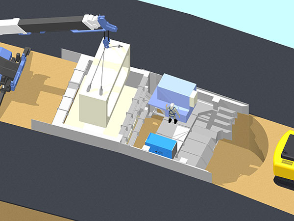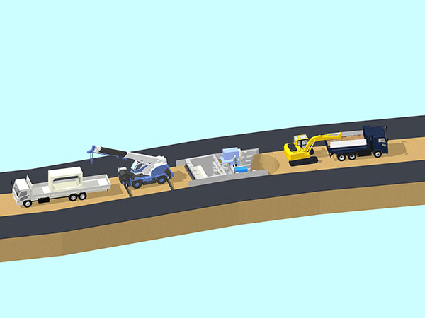 下水道の管渠埋設・雨水排水渠の築造・河川改修工事などで使用されています。
