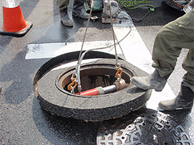 上下水道・電気・通信・ガス等のマンホール蓋や周辺舗装の損傷時の補修や、蓋の老朽化による取替え工事等に用いる工法です。