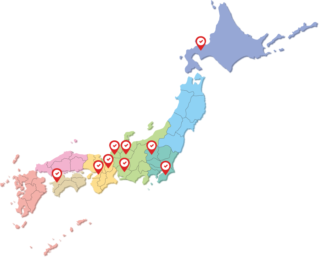 また、通常の工法では難しい工事にも対応可能なため、地元中部はもちろん、北海道から沖縄まで、対応可能なエリアを全国に広げ展開しています。